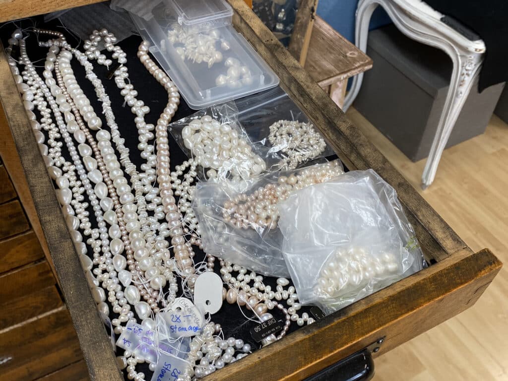 Ich habe eine grosse Auswahl an Leder, Perlen und Edelsteinen.