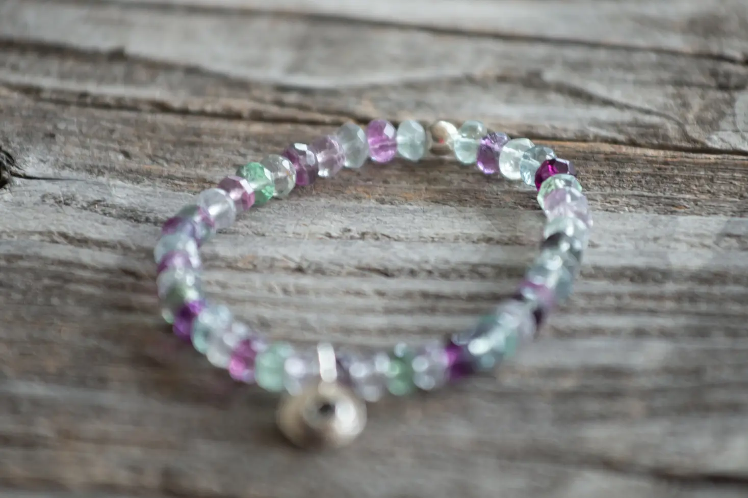 Facettierter Stein in Grün- Lila- und Gräutönen, ca. 6,5mm.