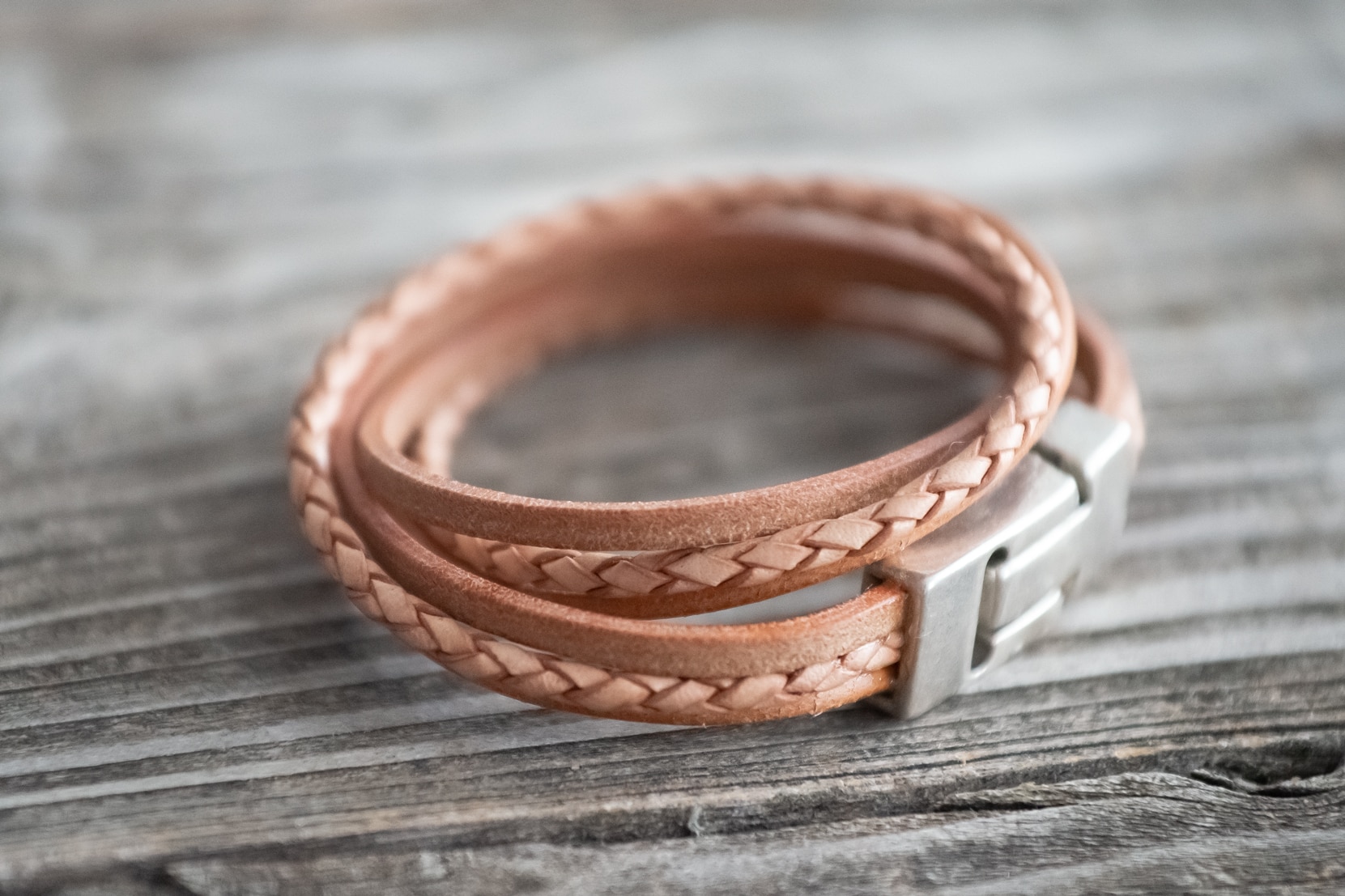 Lederarmband 3fach und doppelt gewickelt.