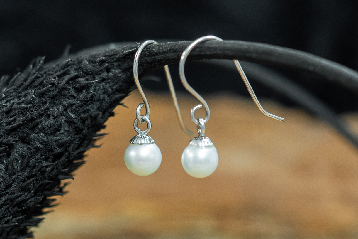 Ohrringe aus Silber mit hochwertigen Süsswasserperlen.