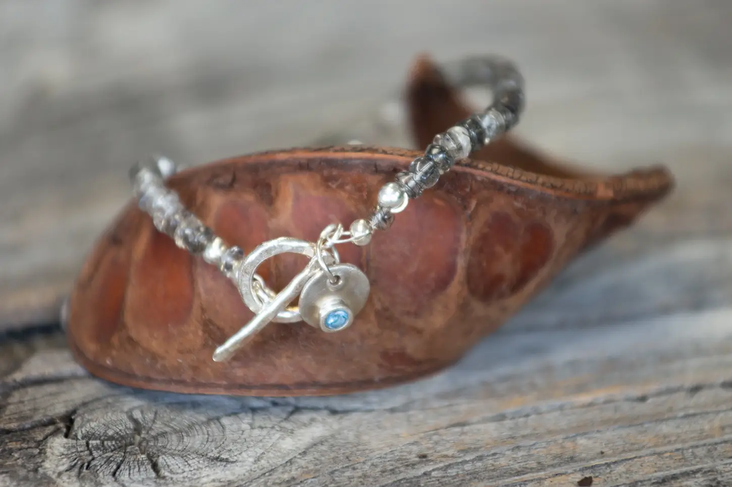 Knebelverschluss Silber, hangemachtes Silbercharm mit Zirkonia.