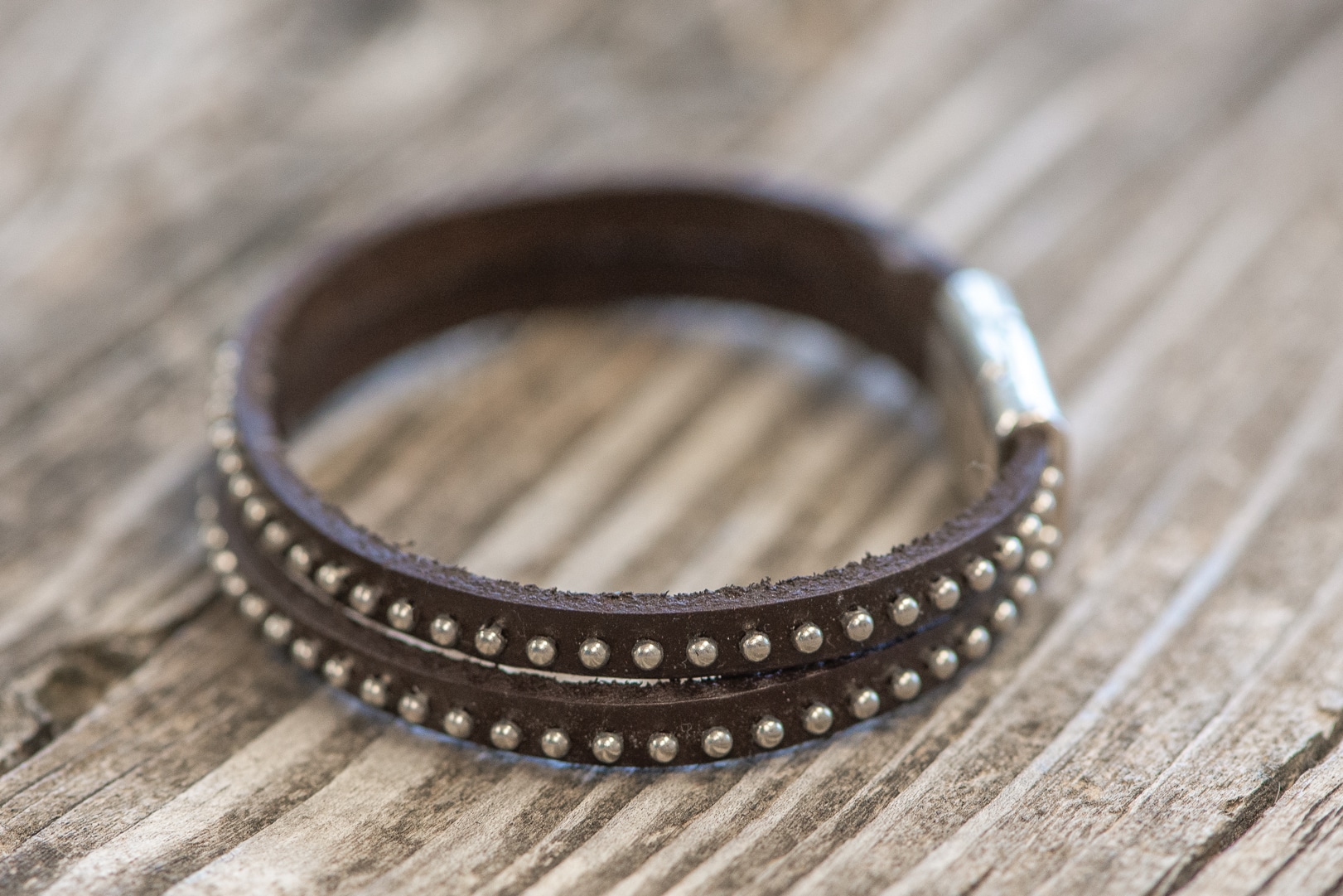 Rindsleder braun mit Nieten in Silberoptik.