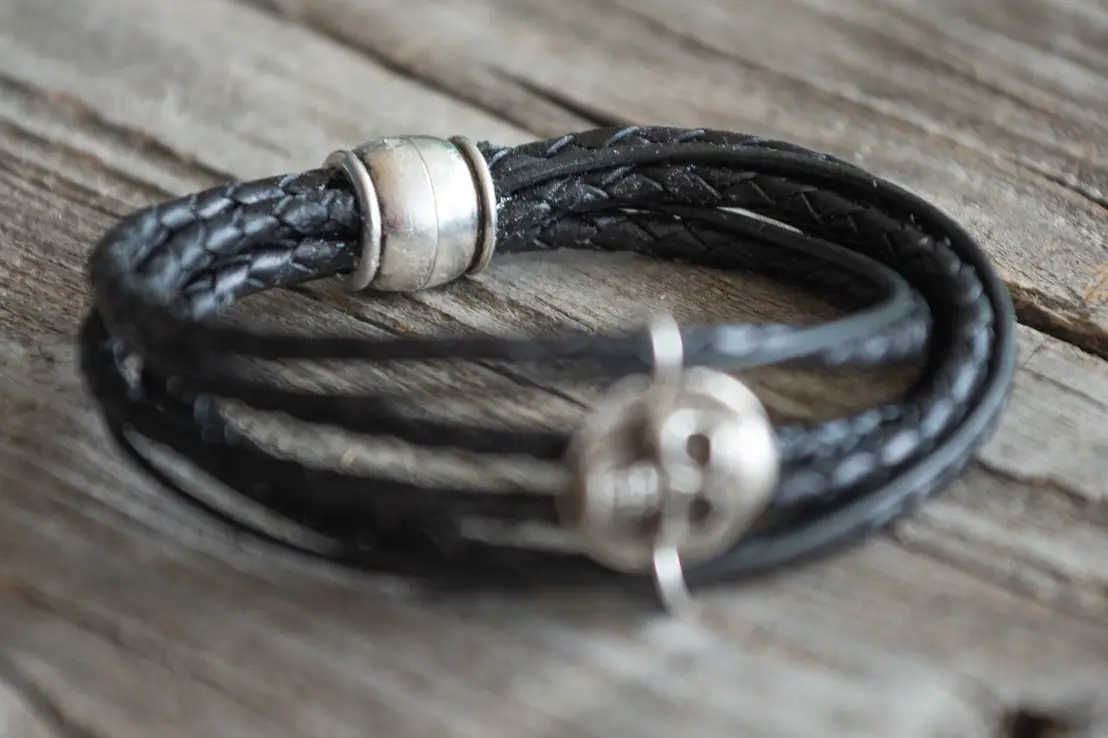 Schwarzes. Lederarmband 7fach.
