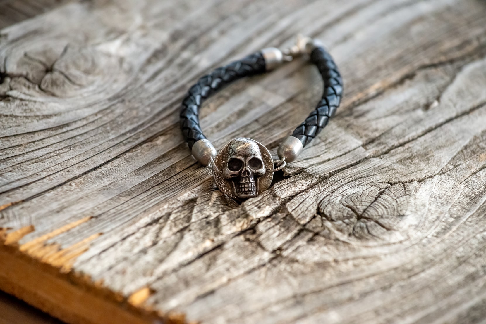 Skull massives, hangearbeitetes, geschwärztes Silber.